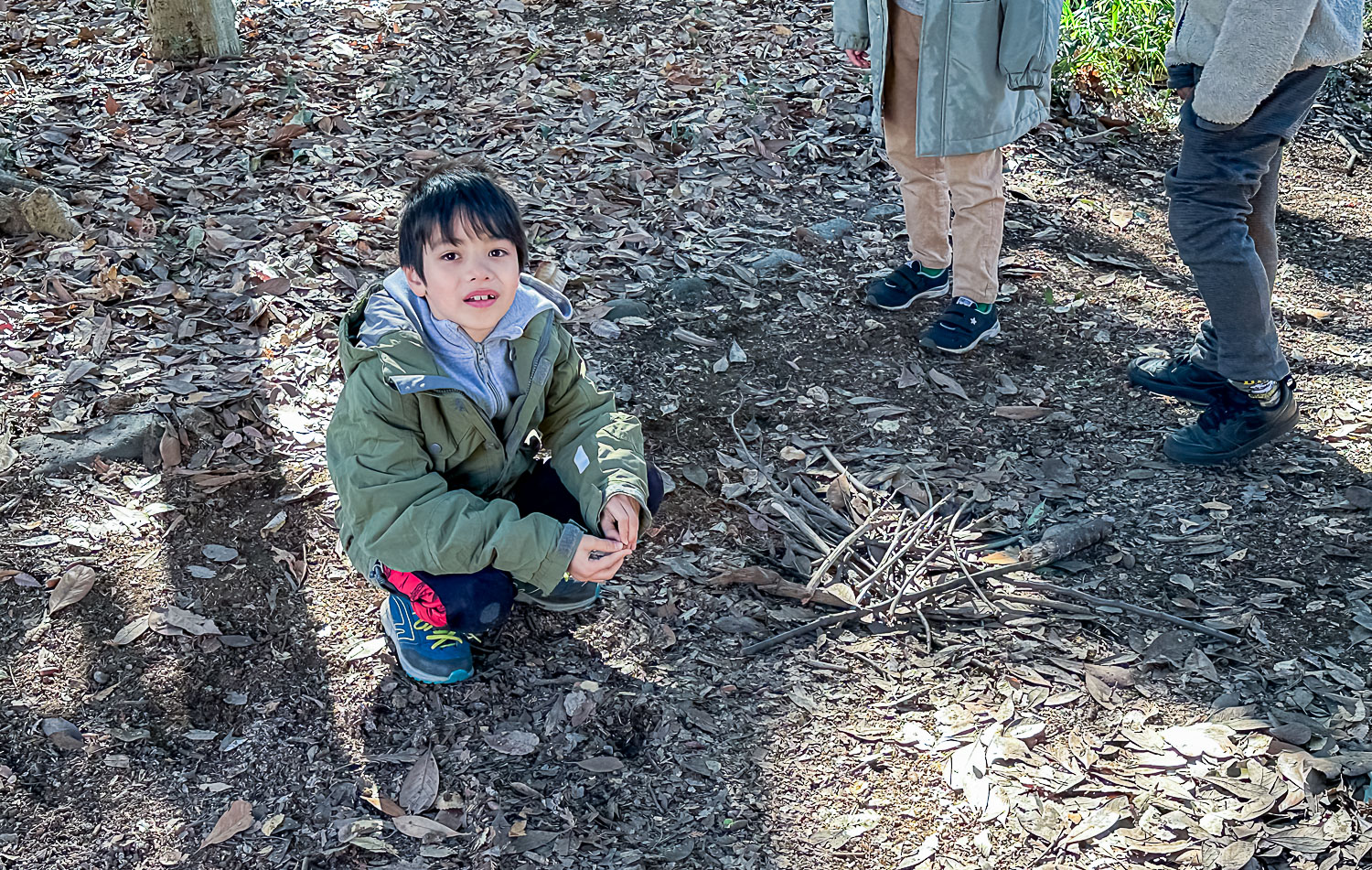 A l'issue de leur pique-nique, ils ont pu laisser libre cours à leur imagination pour créer des compositions éphémères à partir des éléments de la nature dans la clairière du parc Chuo.