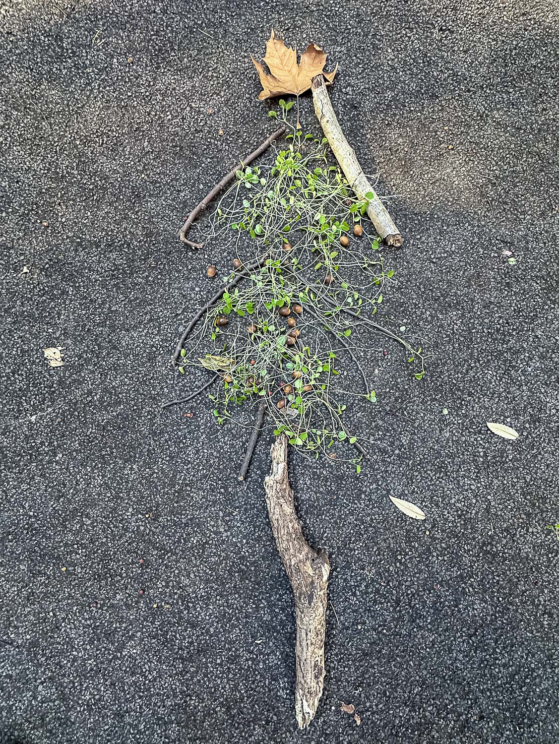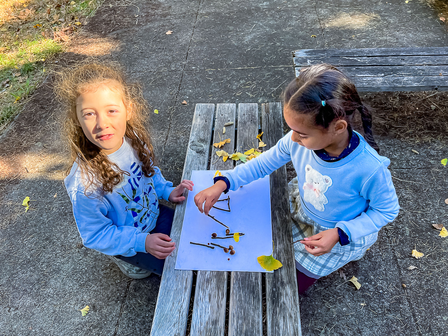 昼食後は、葉や枝、石など自然の素材を使って、森の中で一時的なアート作品を制作しました。 このランドアートは、地球環境のはかなさと美しさを感じさせる教育的な時間となりました。