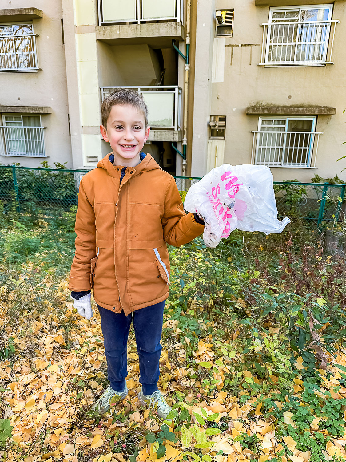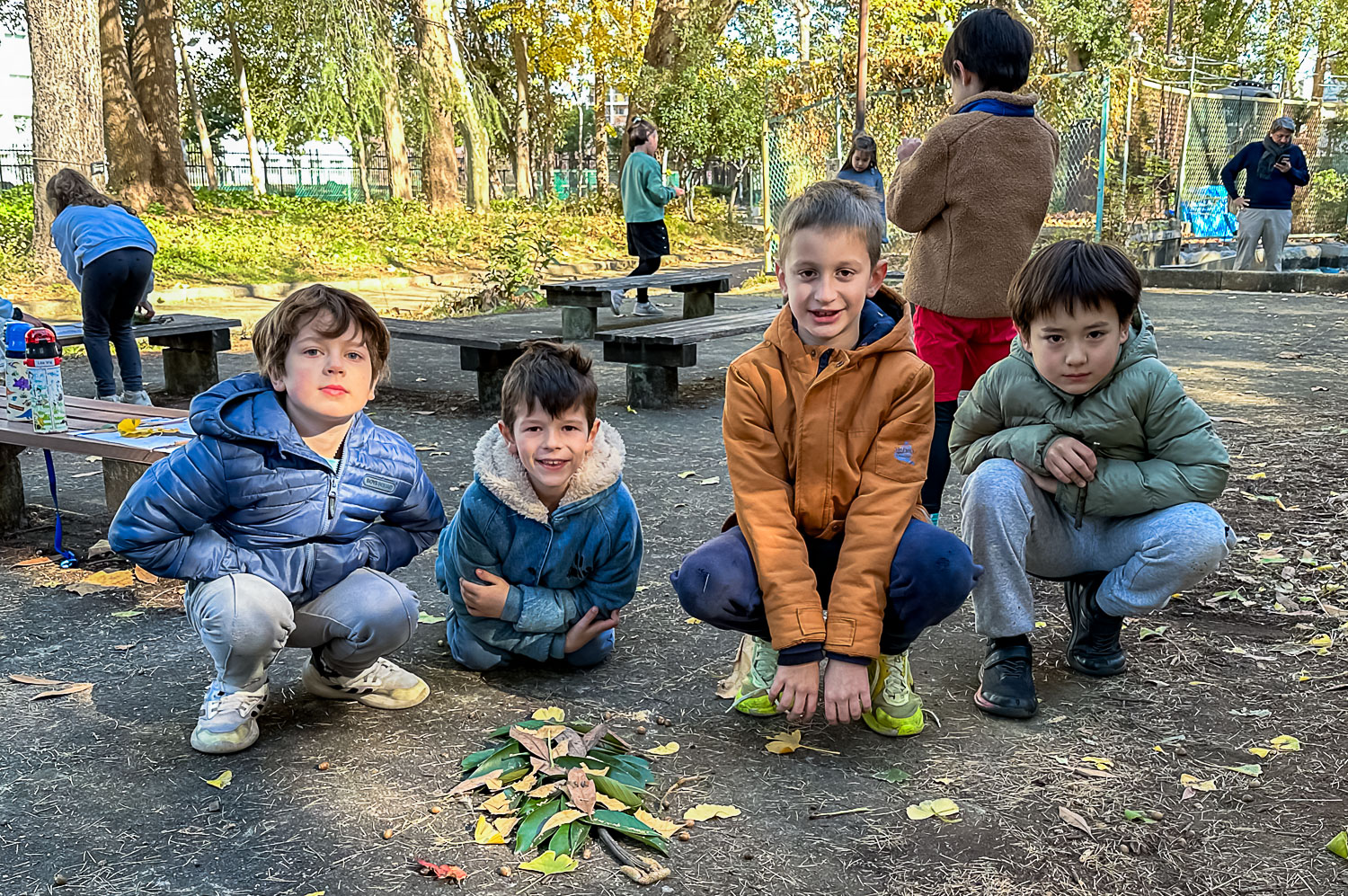 東京国際フランス学園のCPAとCE2Cの児童たちは、秋晴れの一日、中央公園で地域清掃とランドアート活動を行いました。
