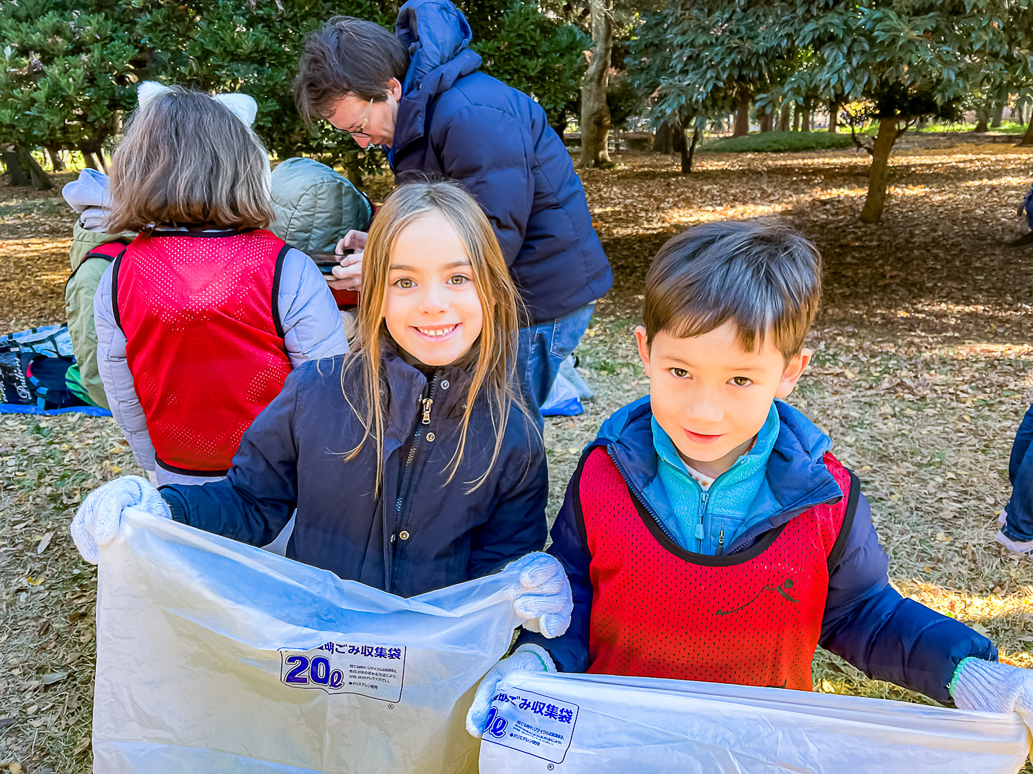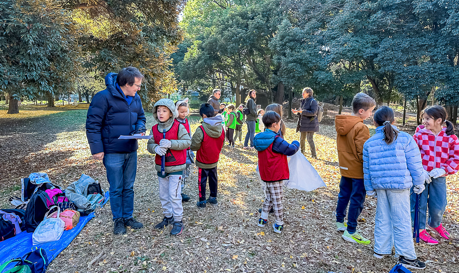On a bright autumn day, the CPA and CE2C pupils of the International French School in Tokyo took part in a new “École-Éco” outing at Chuo Park, combining a neighborhood clean-up with a land art workshop.